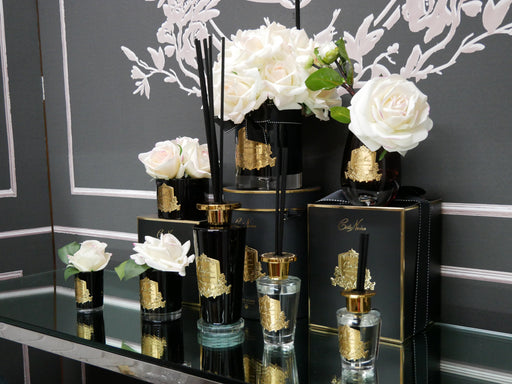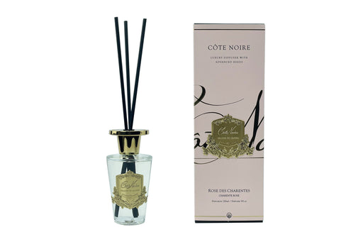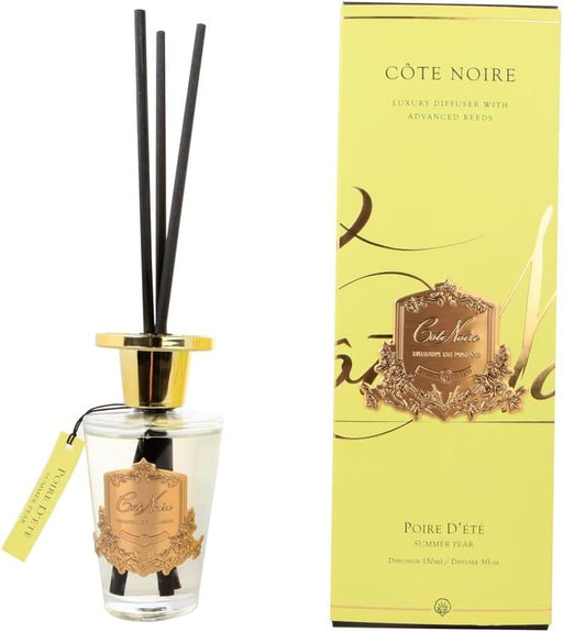 View full detailsCote Noire Diffuser Set Gold & Navy - Eau de Vie Features - Comes in a clear glass adorned with gold Cote Noire badge - Advanced reeds that do ...