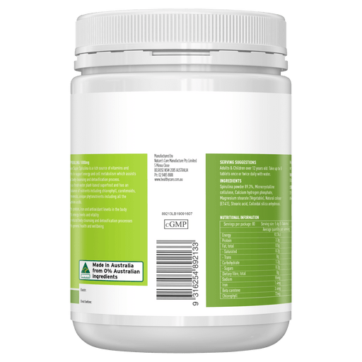 General Information Healthy Care Super Spirulina 1000mg is a rich natural source of antioxidants, protein, iron and beta carotene. Healthy Care S...