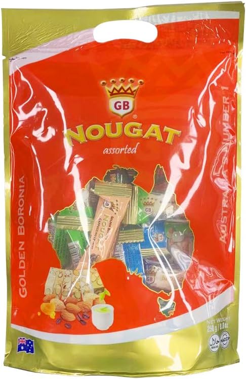View full detailsGolden Boronia Original Crunchy Nougat is made with the natural goodness of honey, almond and golden corn with absolutely no artificial colouring.T...